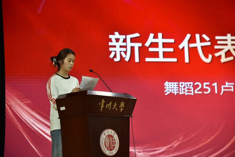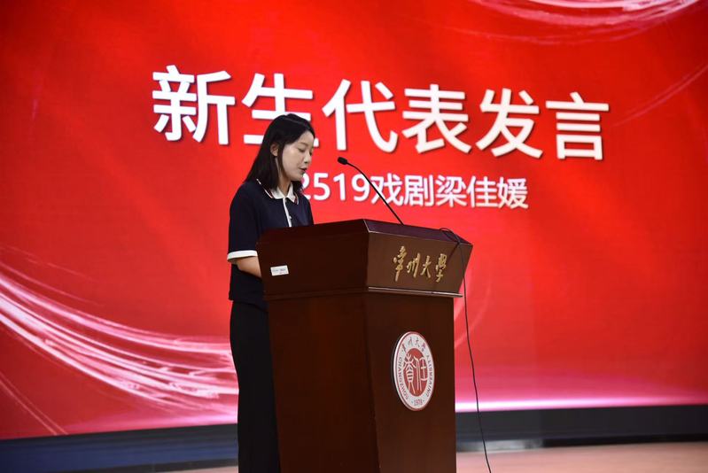 典礼在激情四射的开场舞串烧中拉开帷幕,青春的活力与动感的节拍瞬间点燃全场,展现了音影学子蓬勃向上的精神风貌。舞毕,典礼进入庄严环节。本科生新生代表卢秀妍与研究生新生代表梁佳媛先后上台发言。他们表达了对大学生活的无限憧憬与严谨求学的决心,誓言将珍惜韶华,在艺术的殿堂里刻苦钻研,用拼搏书写无悔青春。