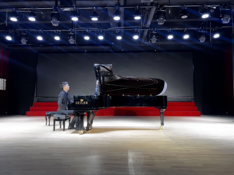 音乐会在2023级张馨宇的俄语声乐弹唱中拉开序幕。她先后带来《Не ветер, вея с высоты》与《Былое》,传递出脱离世俗沉重的通透感与灵魂超脱的意境,以及对逝去时光的怀念,为我们带来了多重情感交织的听觉盛宴;随后,2024级邵杰楷和王晔依次演奏了李斯特的《Sonetto 104 del Petrarca》与德彪西的《Pour le piano: Prelude》,以及柴可夫斯基的《四季,Op.37b》选段与张朝改编的《中国旋律》选段,通过演奏展现出西方古典音乐与中国作品的不同特点;2025级陈慧琳、黄泽莹和张圣轩依次演奏了卡普斯汀的《音乐会练习曲Op. 40, No.1》、但昭义的《思恋》、张朝《叙事曲》以及舒曼作曲的《狂欢节Op.9,No.3》等作品,呈现出别样的舞台演绎。此外,邵杰楷和王晔邀请任静、张漫林为大家带来古筝以及大提琴合奏,展现出西方古典音乐与中国作品的不同特点,传递出乐观典雅的古典韵味。陈慧琳与黄泽莹两位同学四手联弹皮亚佐拉的《自由探戈》和《遗忘》,打破了传统探戈局限,融入古典音乐的严谨结构与爵士音乐的灵动韵味;张圣轩与杨竣文两位同学四手联弹勃拉姆斯作曲的《十六首圆舞曲Op.39》,融合了古典圆舞曲的典雅与民间舞曲的质朴;同时特邀程馨逸、杨可萱演唱《爱人送我向日葵》《定风波・莫听穿林打叶声》等声乐作品,展现古今音乐的传承创新,为本次研究生期中音乐会画上了圆满句号。