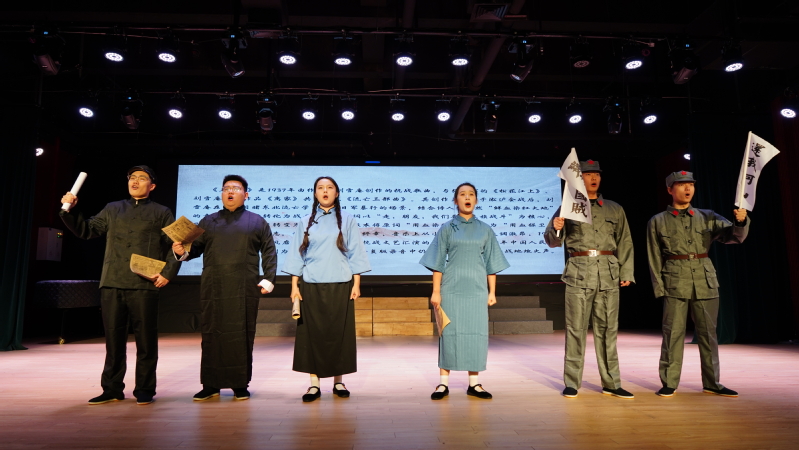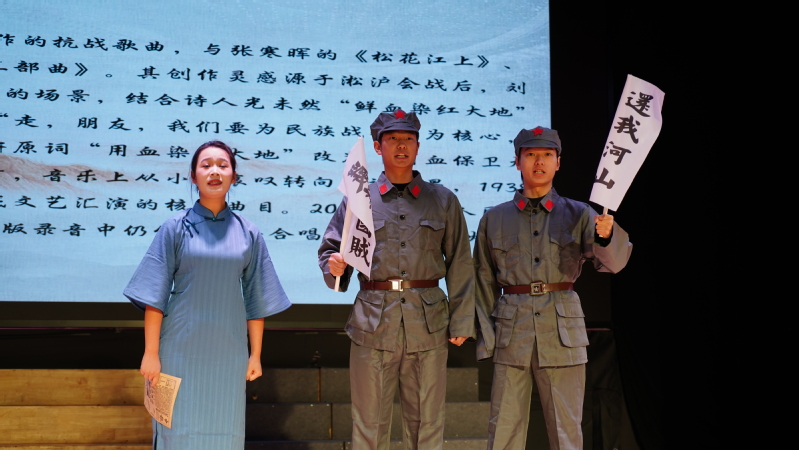 本次党课以时间为轴,将历史叙事与红色旋律深度融合。课堂开篇,段老师“九一八事变”的历史背景切入,详细介绍作曲家张寒晖的创作历程,让在场党员深刻理解《松花江上》背后的家国之痛。随后,学生代表登台演唱《松花江上》,低沉悲怆的旋律缓缓流淌,仿佛将众人带回那个山河破碎的年代,引发强烈情感共鸣。