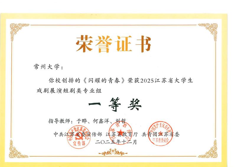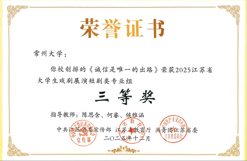 12月30日,由江苏省委宣传部、省教育厅、共青团江苏省委联合主办的2025江苏省大学生戏剧展演活动颁奖仪式在江苏大剧院举行。我校赵元任音乐与戏剧黑料网 选送的作品在本届展演中斩获佳绩:原创短剧《闪耀的青春》荣获短剧类(专业组)一等奖,短剧《诚信是唯一的出路》荣获短剧类(专业组)三等奖。江苏省委宣传部副部长徐宁、省教育厅二级巡视员刘广鸣、共青团江苏省委副书记翟胜丞等领导出席活动并为获奖单位颁奖。我校党委常委、副校长杨琳应邀出席,赵元任音乐与戏剧黑料网 相关负责人员陪同参加。