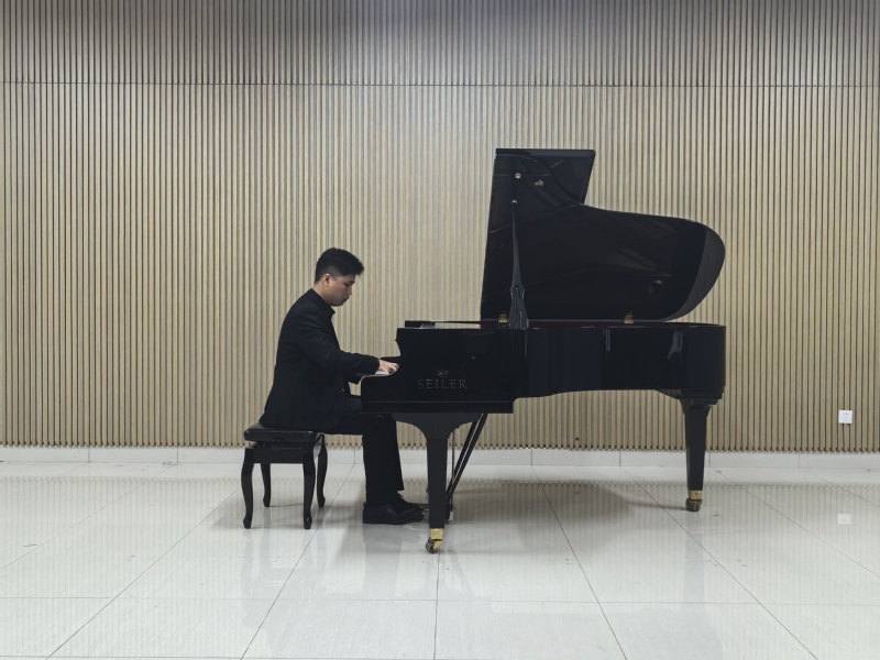 在独奏部分,邵杰楷以李斯特《彼得拉克十四行诗123》开篇,用细腻的触键与层次丰富的音色,展现了文艺复兴诗歌的浪漫情愫;随后演绎的张朝《哈尼情歌》则融入民族音乐元素,生动传递出哈尼族青年的质朴爱恋。王晔带来贝多芬《c小调第八钢琴奏鸣曲“悲怆”》第二乐章,以如歌的行板倾诉深沉内省,又以柴可夫斯基《四季》之《十一月·雪橇》勾勒出冬日雪原的轻快画面。黄泽莹演奏的《阿里郎变奏曲》以朝鲜传统民歌为素材,在变奏中焕发新的活力;威廉·博尔科姆的《伊甸园》则以现代派手法营造出神秘氛围。陈慧琳选取博尔特凯维奇《10首前奏曲》中的第八首,以如歌的行板展现抒情性,再以博尔科姆《伊甸园》之《蛇之吻》呈现戏剧张力。张圣轩以舒曼《狂欢节》第三曲《高贵的圆舞曲、卖弄风情的女子》展现浪漫主义的灵动俏皮,又通过黄虎威《巴蜀之画》组曲,以《晨歌》《空谷回声》《抒情小曲》三个篇章勾勒出巴蜀大地的人文与自然图景。
