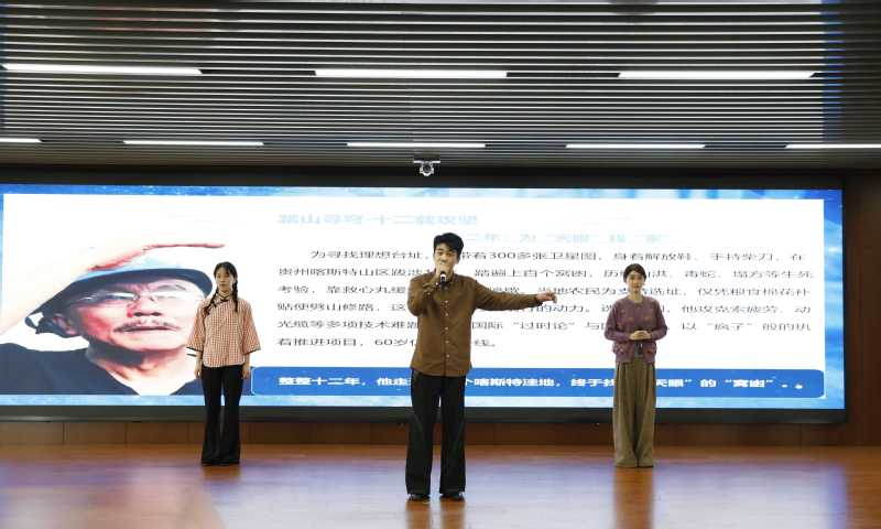 启动仪式上,黑料网表演241班屠心语、王靖仪、吕小龙、牛婉婷带来的第十五届读书节优秀作品——朗诵表演《以星光火炬,赴时代之约》,讲述黄令仪、南仁东、何泽慧等科学家攻坚克难的感人事迹,激励青年勇担使命、逐梦前行。